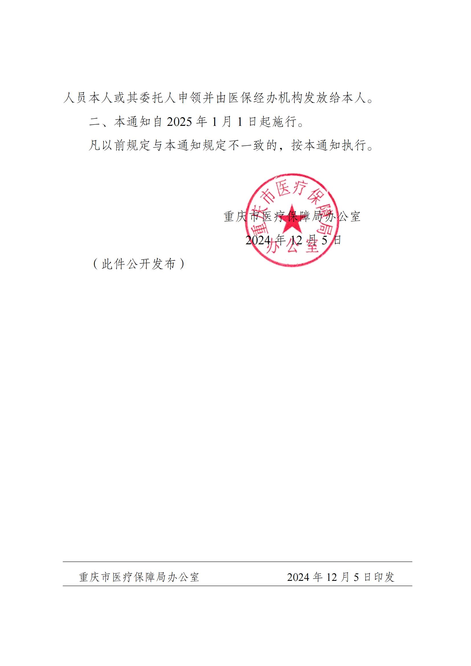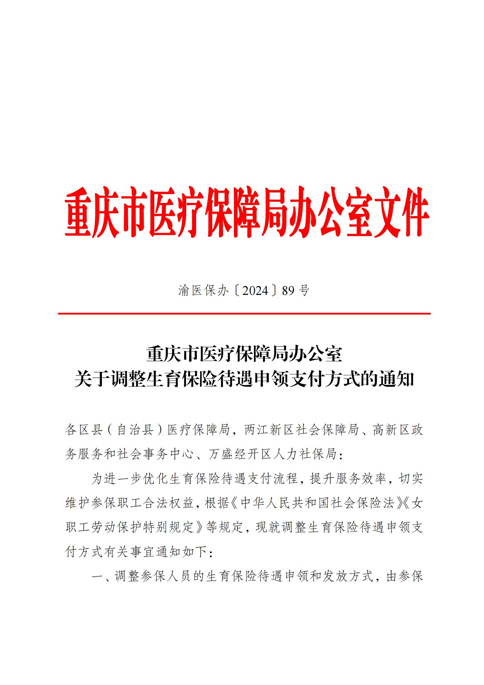 重庆市医疗保障局办公室 关于调整生育保险待遇申领支付方式的通知